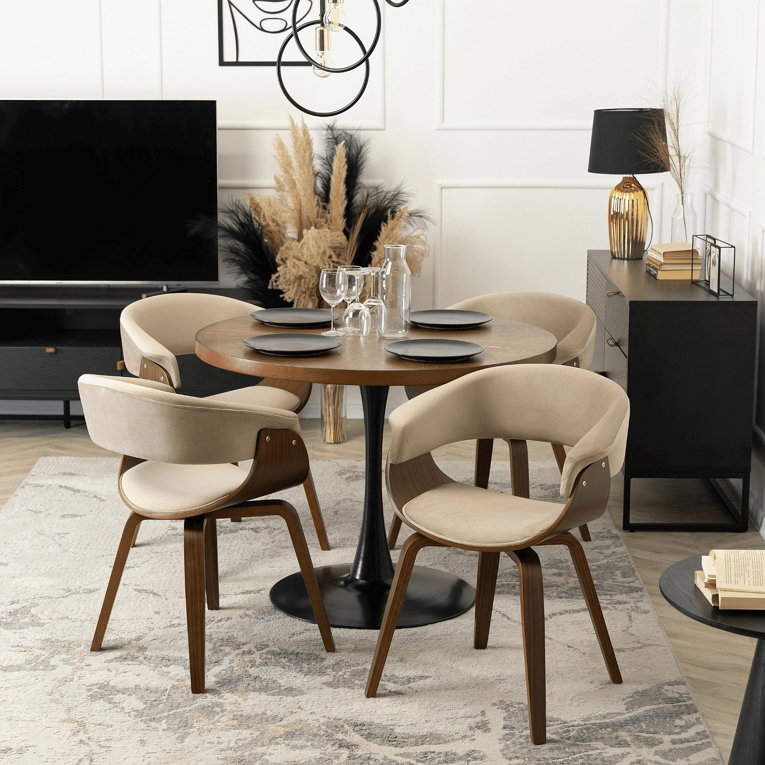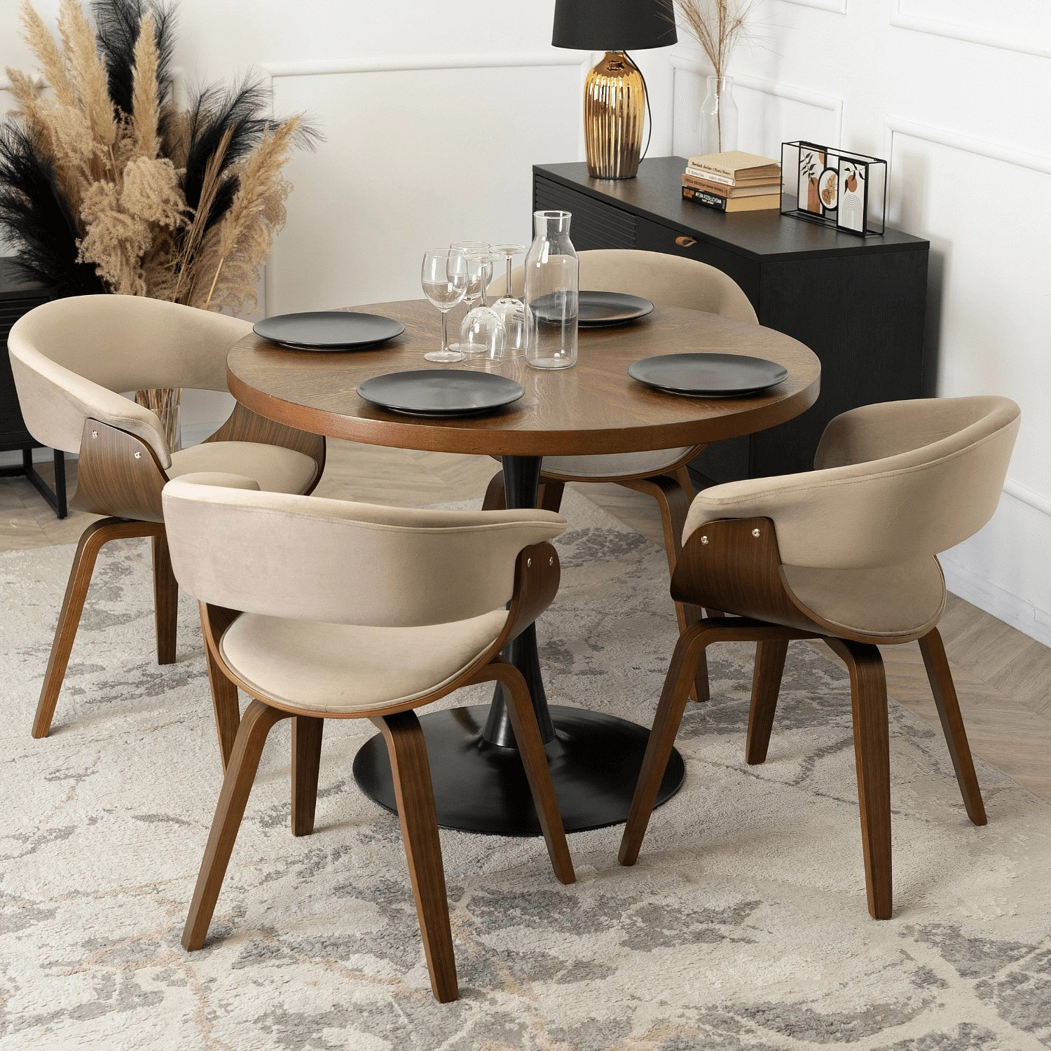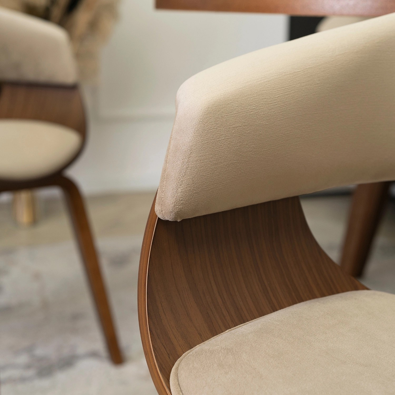 Židle GARY Sametová Béžová/Ořech