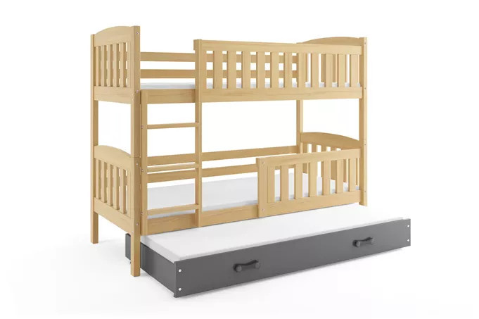 Dětská patrová postel KUBUS 3 s přistýlkou 90x200 cm, včetně matrací, Přírodní/Grafit