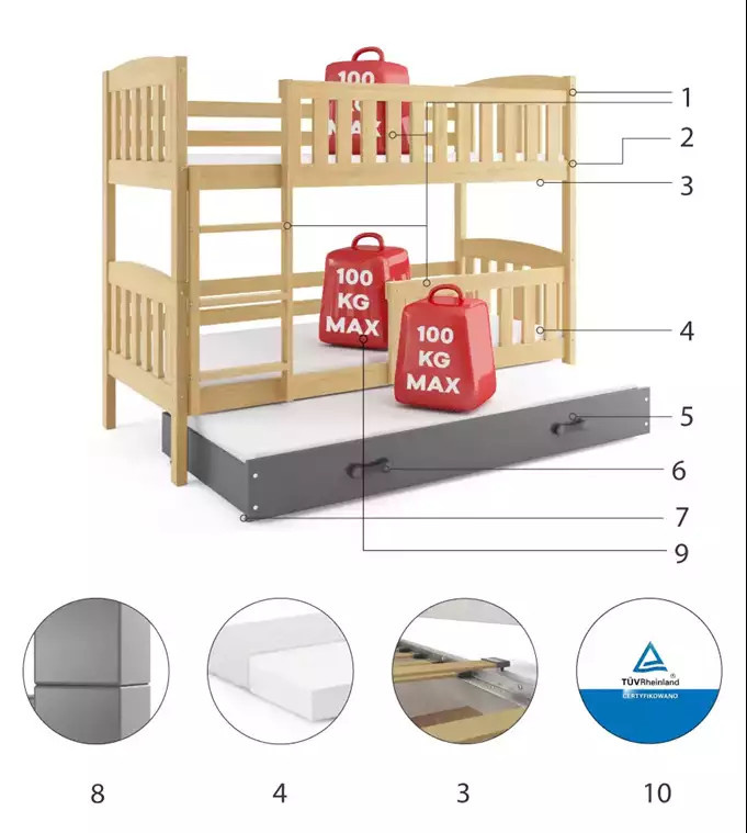 - Maximální zatížení postele je 100 kg