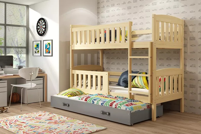 Dětská patrová postel KUBUS 3 s přistýlkou 90x200 cm, bez matrace, Přírodní/Grafit
