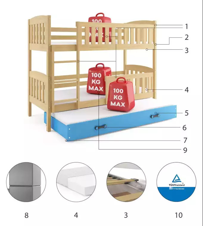 - Maximální zatížení postele je 100 kg