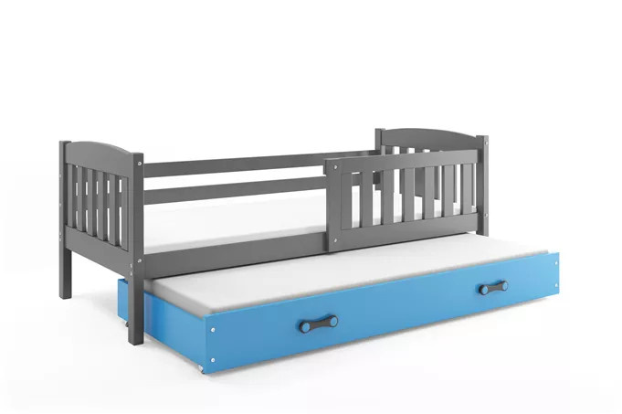 Dětská postel KUBUS s přistýlkou 80x190 cm, bez matrace, Grafit/Modrá