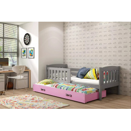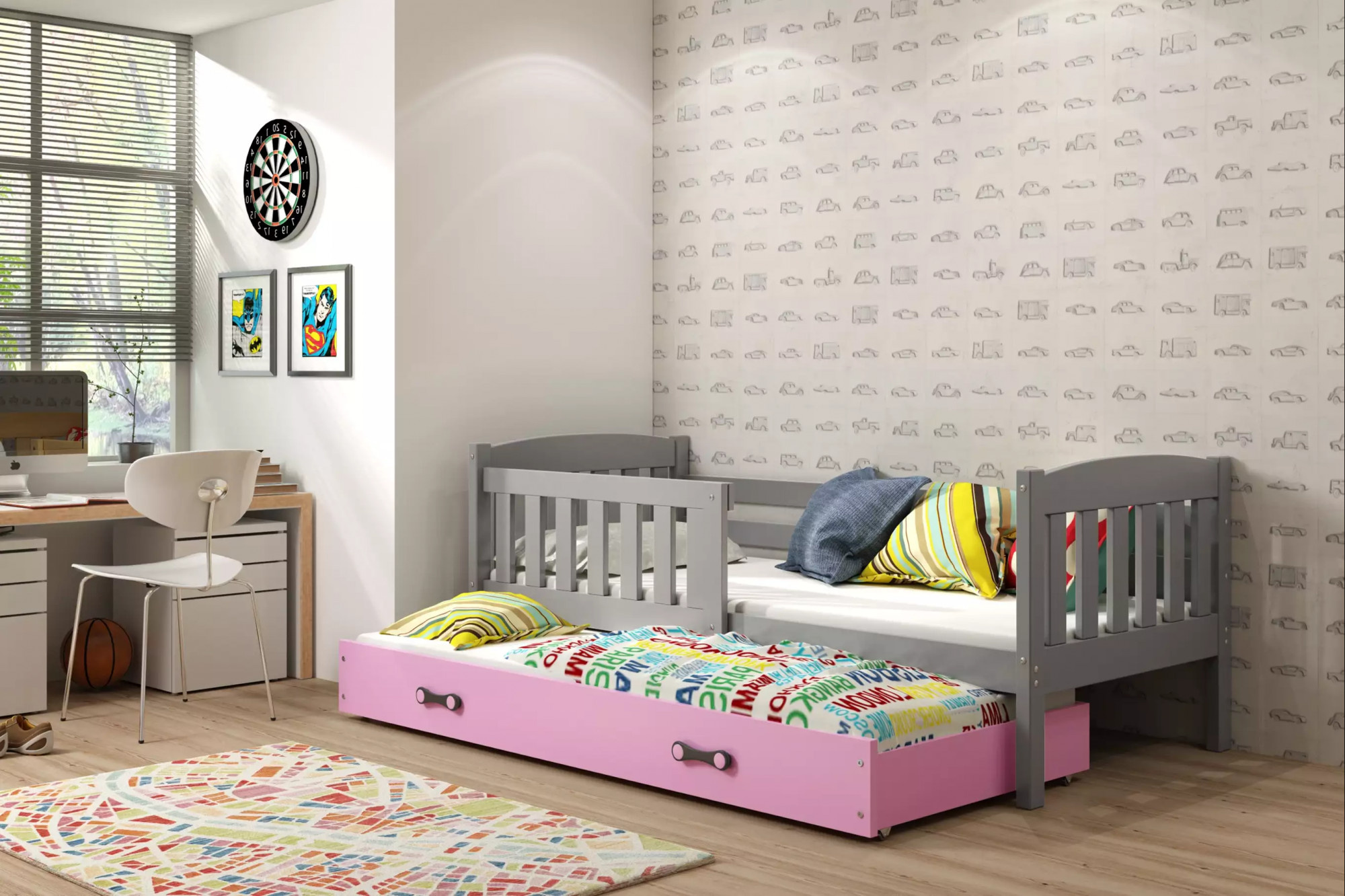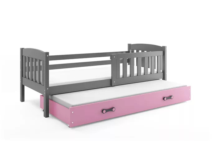 Dětská postel KUBUS s přistýlkou 90x200 cm, bez matrace, Grafit/Růžová