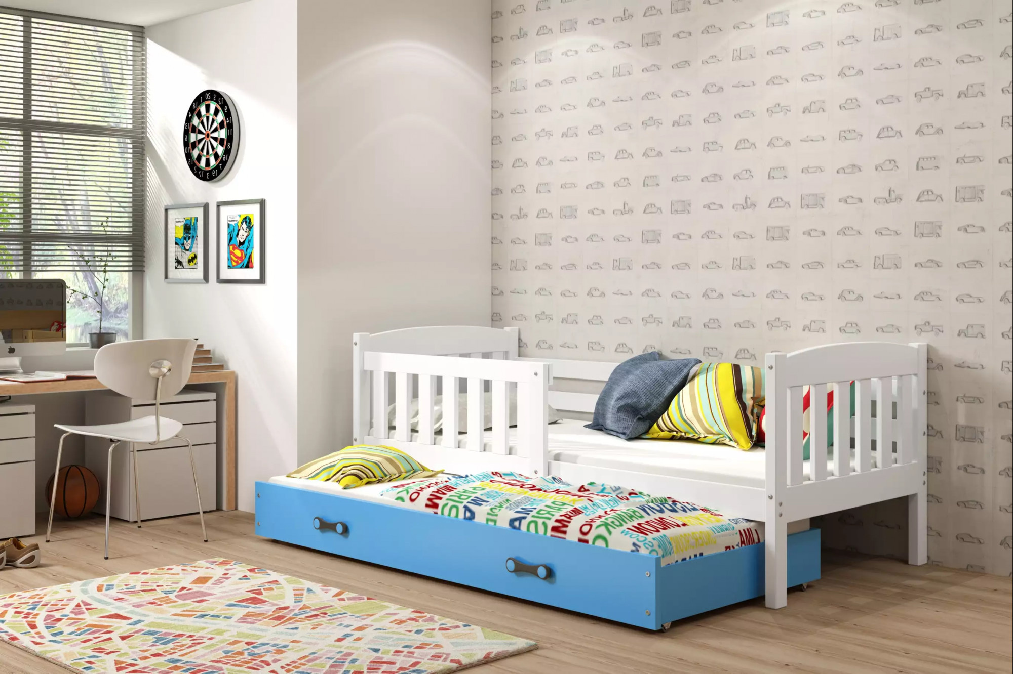 Dětská postel KUBUS s přistýlkou 80x190 cm, bez matrace, Bílá/Modrá