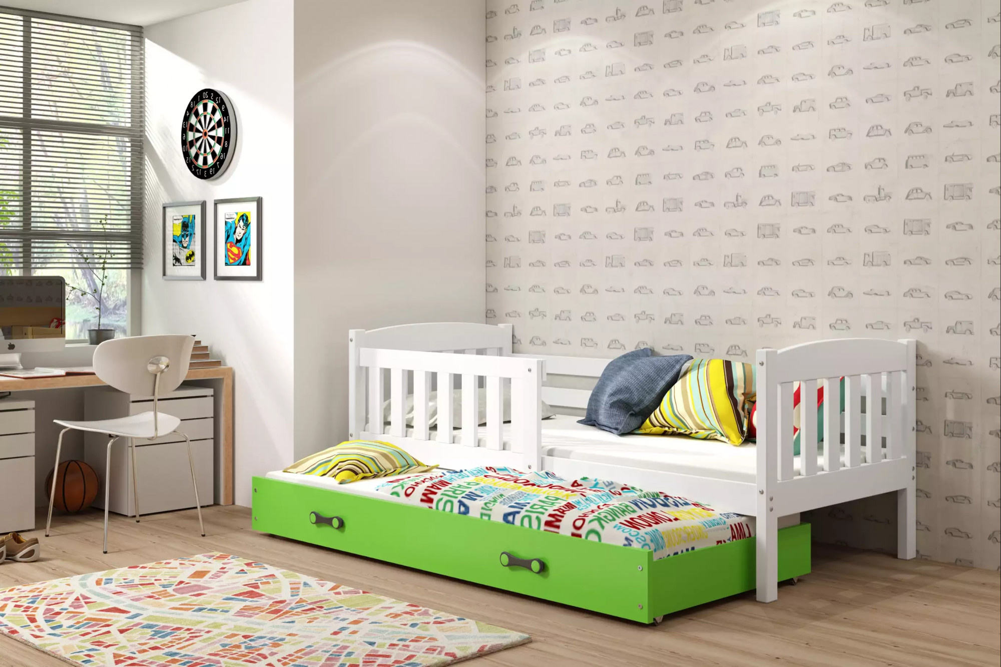 Dětská postel KUBUS s přistýlkou 80x190 cm, bez matrace, Bílá/Zelená