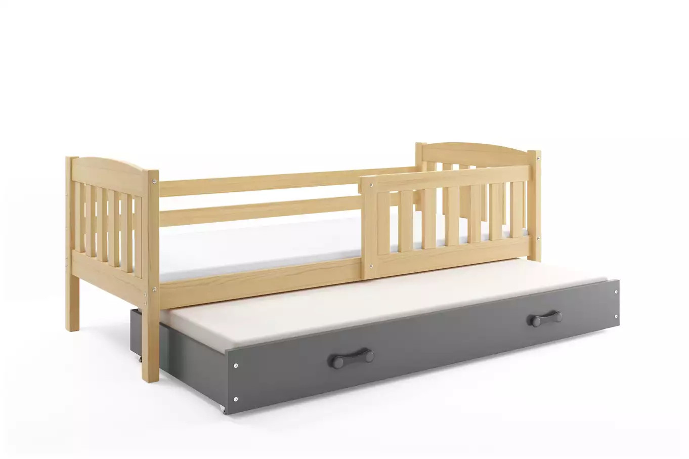 Dětská postel KUBUS s přistýlkou 80x190 cm, s matracemi, Přírodní/Grafit
