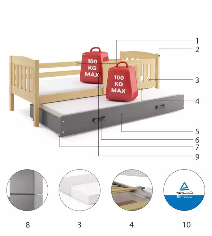 - Maximální zatížení postele je 100 kg
