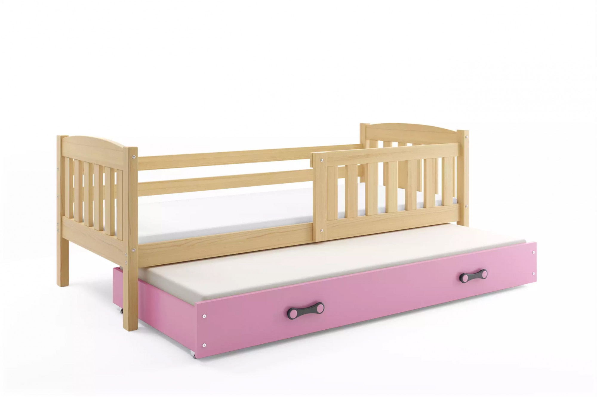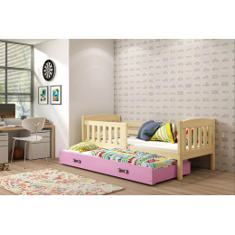 Dětská postel KUBUS s přistýlkou 80x190 cm, bez matrace, Přírodní/Růžová