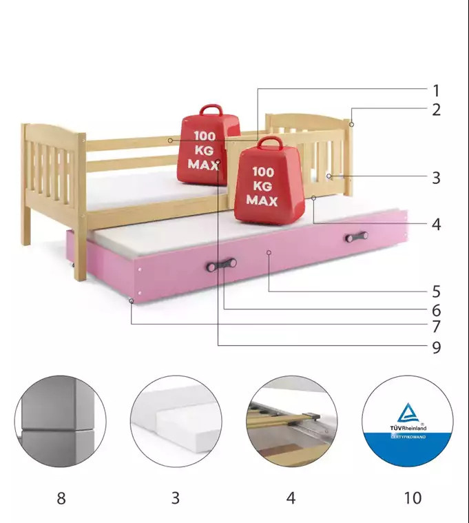 - Maximální zatížení postele je 100 kg