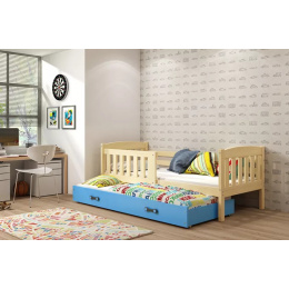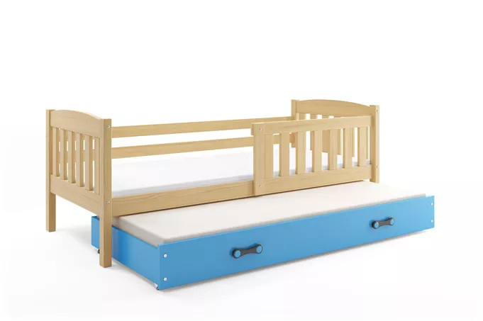 Dětská postel KUBUS s přistýlkou 90x200 cm, s matracemi, Přírodní/Modrá