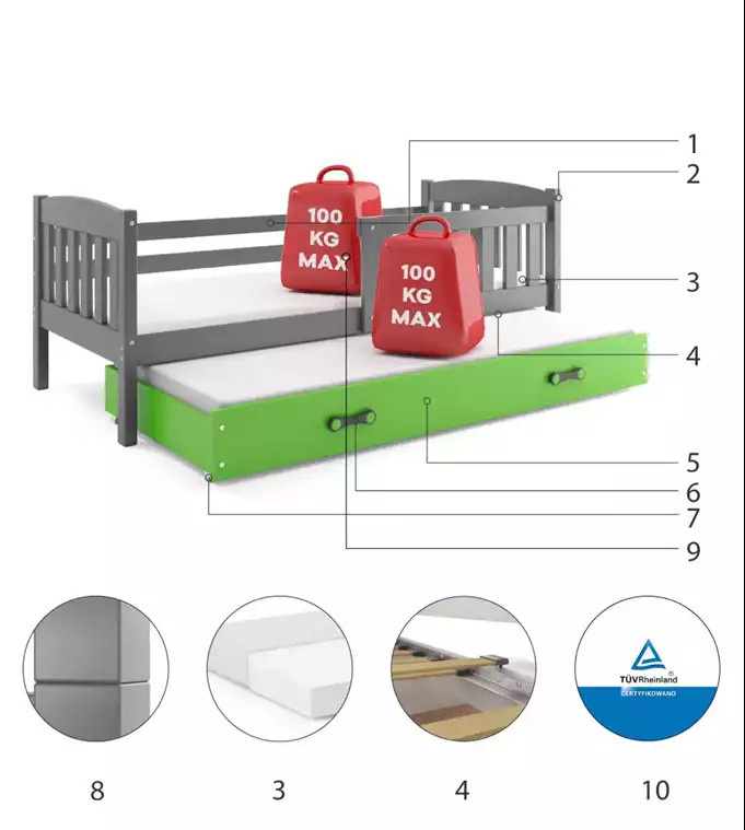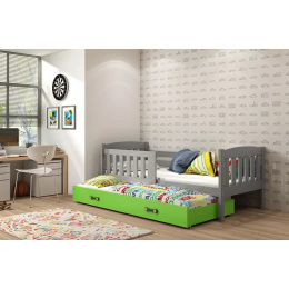 Dětská postel KUBUS s přistýlkou 90x200 cm, s matracemi, Grafit/Zelená