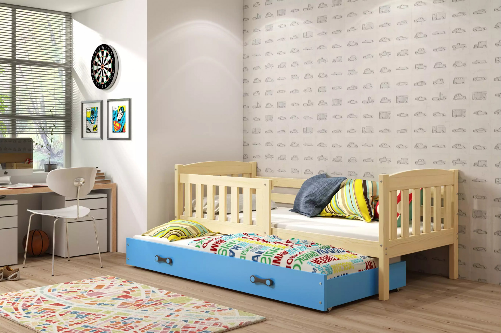 Dětská postel KUBUS s přistýlkou 90x200 cm, bez matrace, Přírodní/Modrá