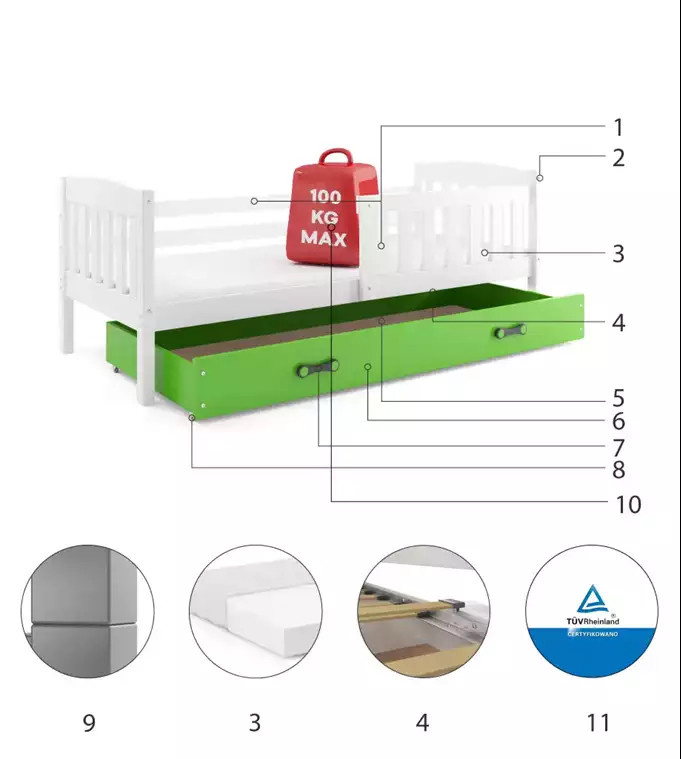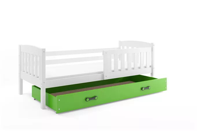 Dětská postel KUBUS 90x200 cm se šuplíkem, bez matrace, Bílá/Zelená