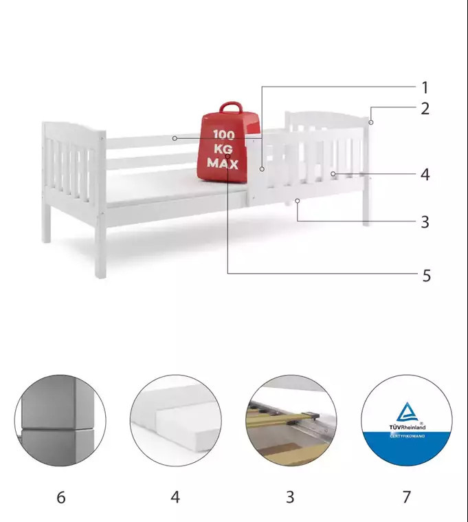 Dětská postel KUBUS 90x200 cm bez matrace, Bílá