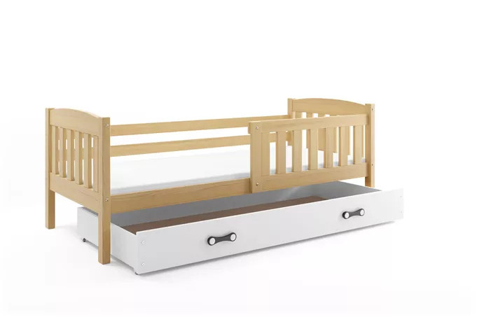 Dětská postel KUBUS 80x160 cm se šuplíkem, bez matrace, Přírodní/Bílá