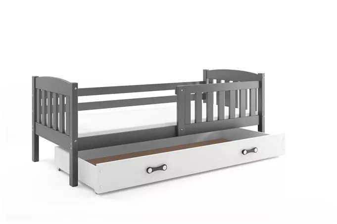Dětská postel KUBUS 90x200 cm se šuplíkem, bez matrace, Grafit/Bílá