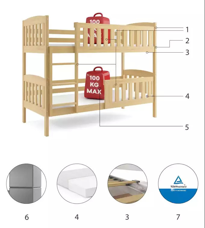 - Rám postele je vyrobený z borovicového dřeva a natřený vodním lakem