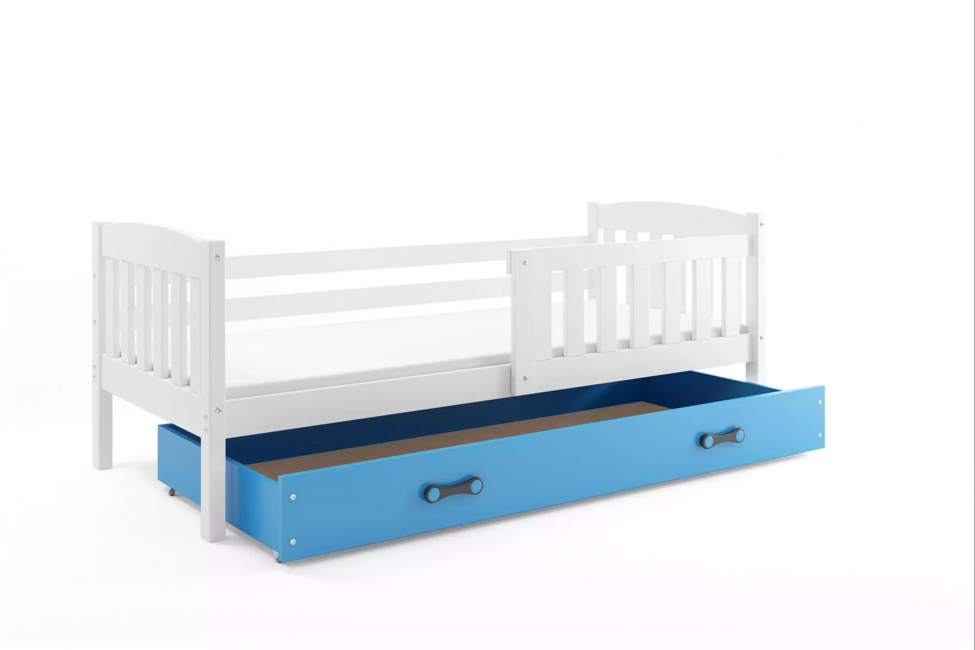 Dětská postel KUBUS 80x160 cm se šuplíkem, s matrací, Bílá/Modrý