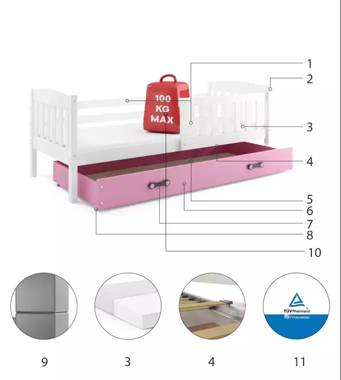 - Maximální zatížení postele je 100 kg