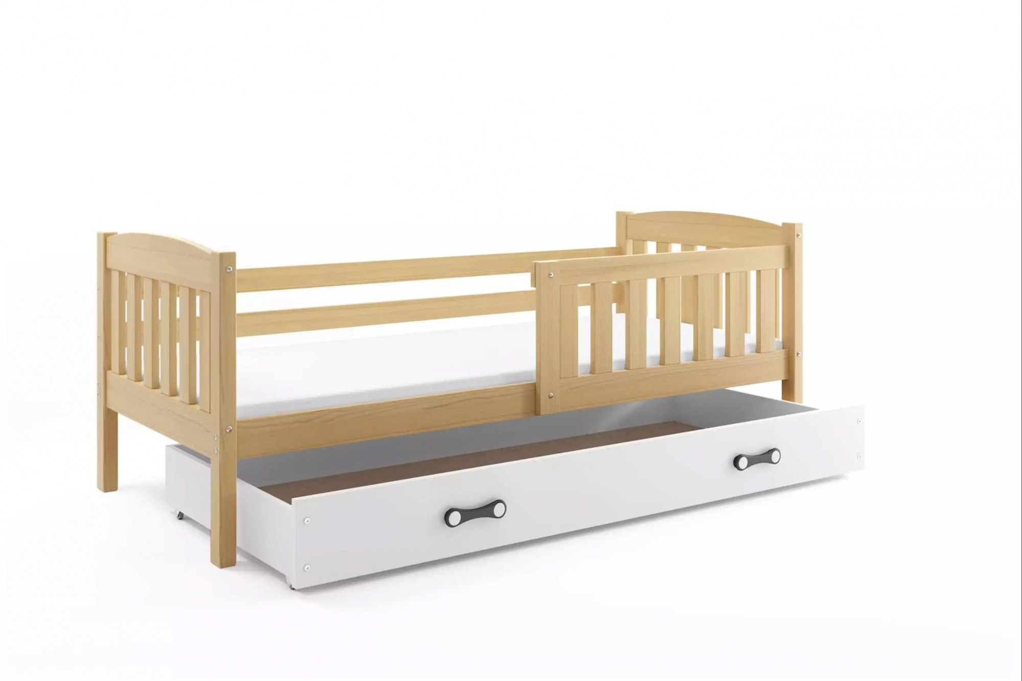 Dětská postel KUBUS 80x160 cm se šuplíkem, s matrací, Přírodní/Bílá