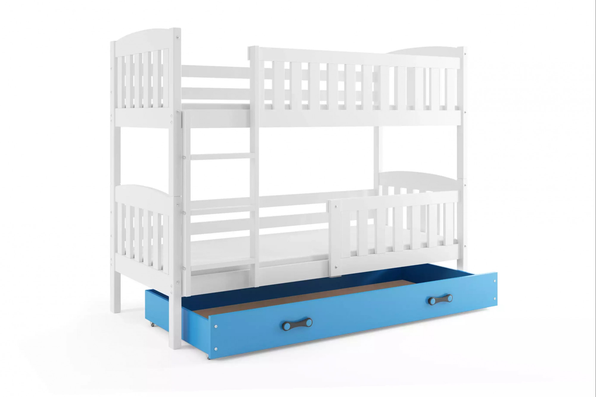 Dětská patrová postel KUBUS se šuplíkem 90x200 cm, včetně matrací, Bílá/Modrá