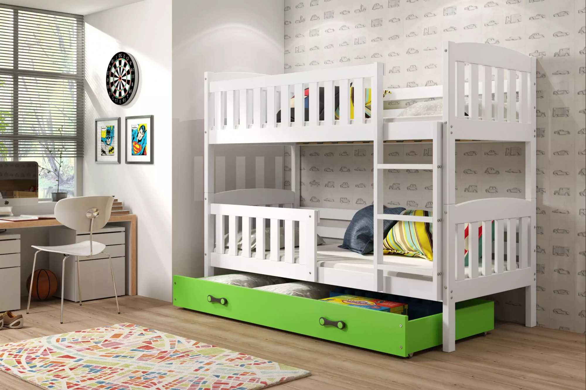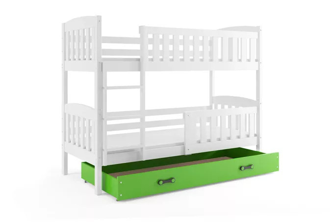Dětská patrová postel KUBUS se šuplíkem 90x200 cm, bez matrace, Bílá/Zelená