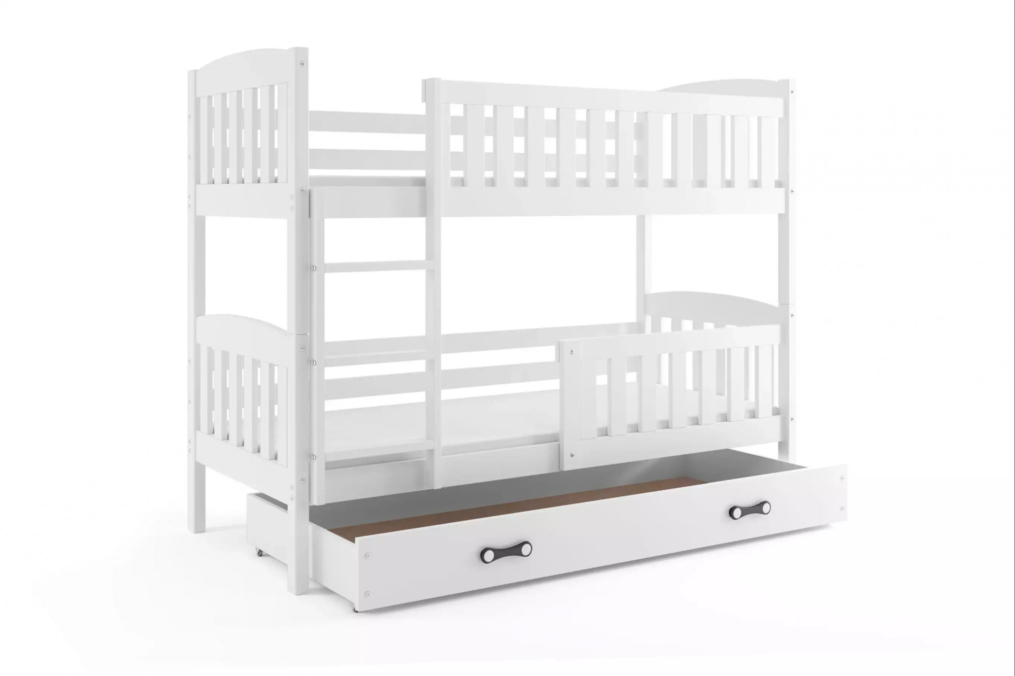 Dětská patrová postel KUBUS se šuplíkem 90x200 cm, včetně matrací, Bílá/Bílá