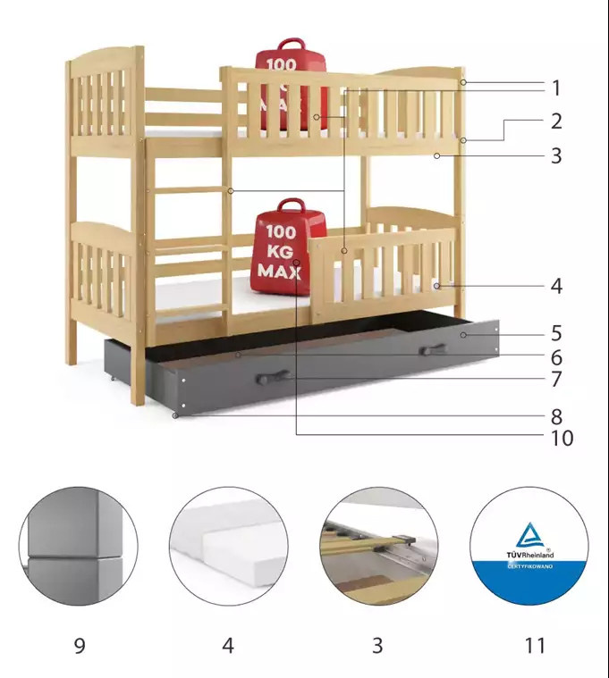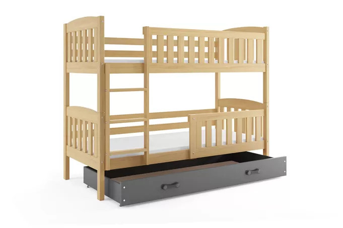 Dětská patrová postel KUBUS se šuplíkem 90x200 cm, bez matrace, Přírodní/Grafit