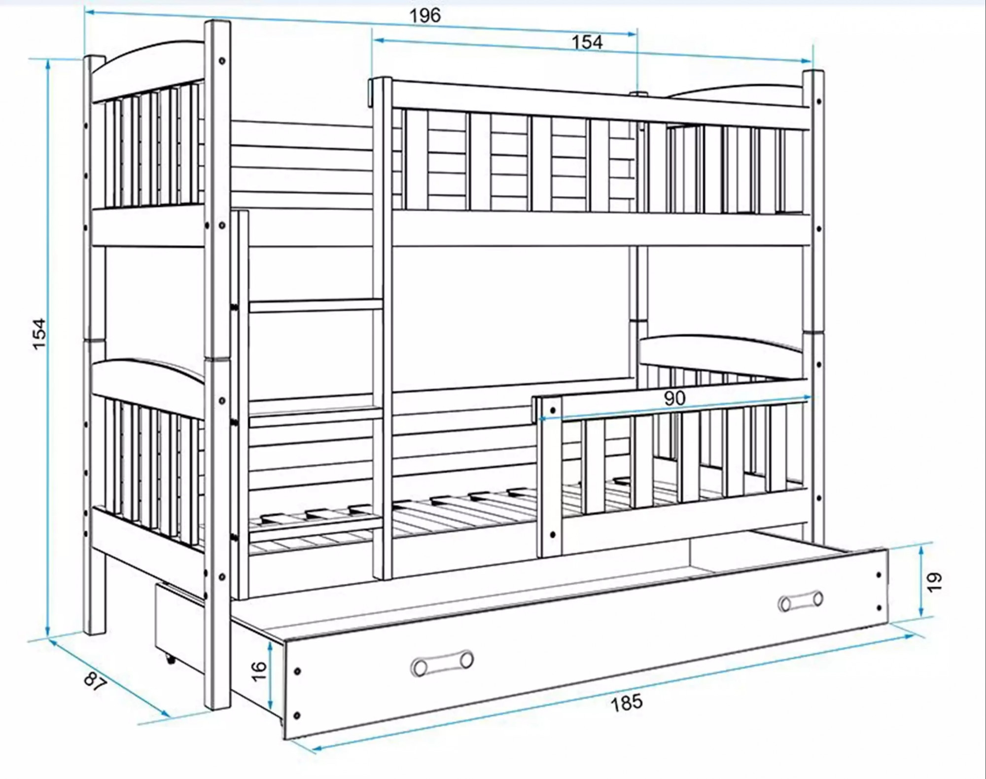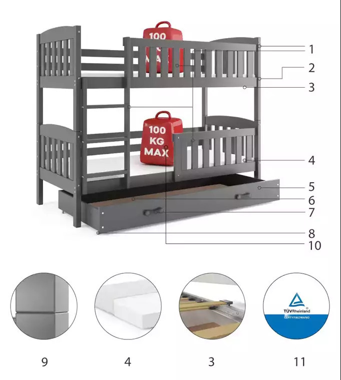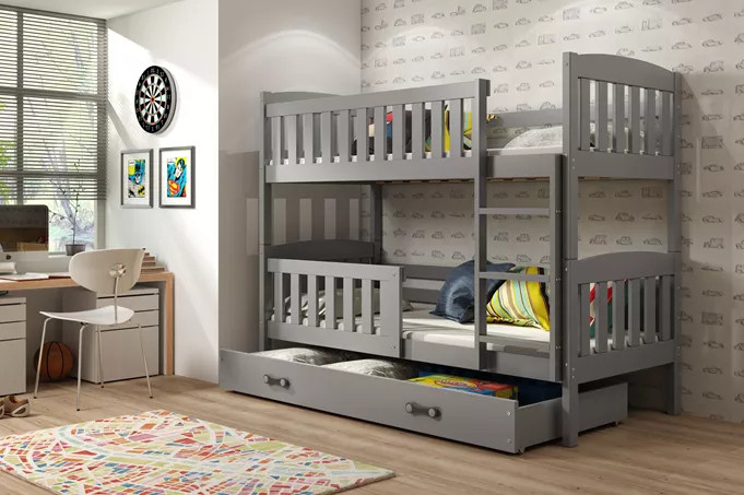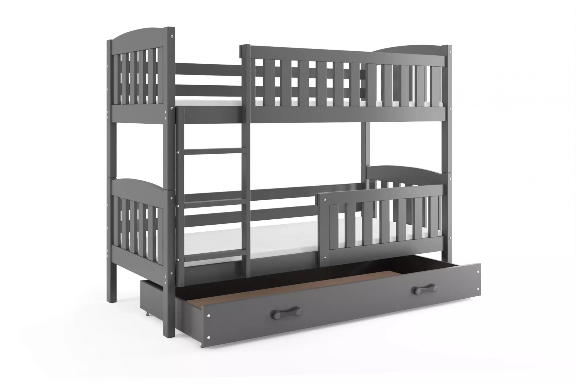 Dětská patrová postel KUBUS se šuplíkem 90x190 cm, včetně matrací, Grafit/Grafit