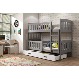 Dětská patrová postel KUBUS se šuplíkem 90x200 cm, bez matrace, Grafit/Bílá