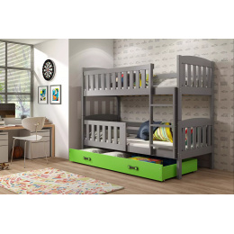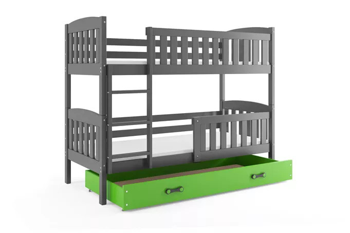 Dětská patrová postel KUBUS se šuplíkem 90x200 cm, včetně matrací, Grafit/Zelená