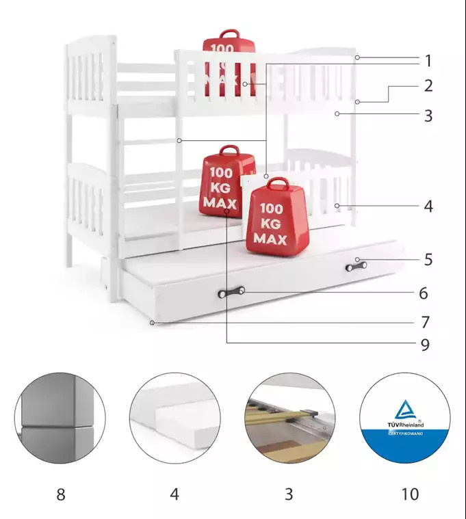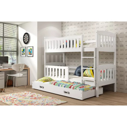 Dětská patrová postel KUBUS 3 s přistýlkou 90x200 cm, včetně matrací, Bílá/Bílá
