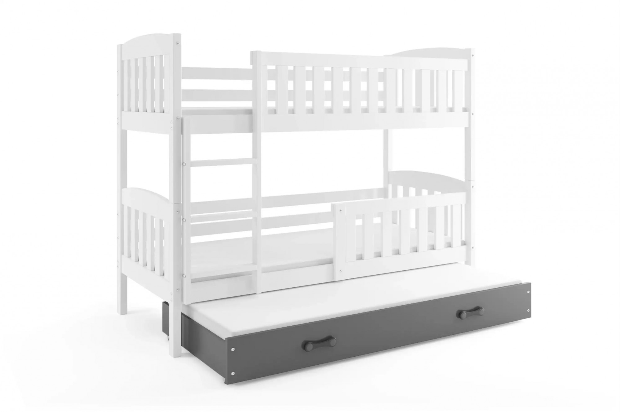 Dětská patrová postel KUBUS 3 s přistýlkou 90x200 cm, bez matrace, Bílá/Grafit