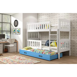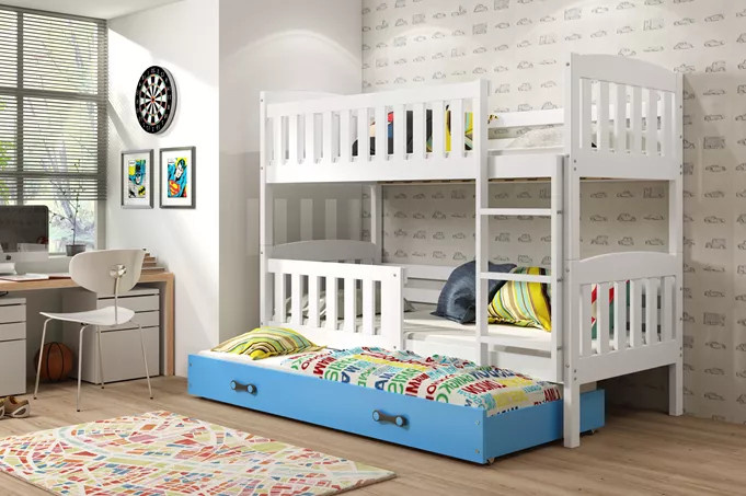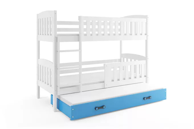 Dětská patrová postel KUBUS 3 s přistýlkou 90x200 cm, včetně matrací, Bílá/Modrá