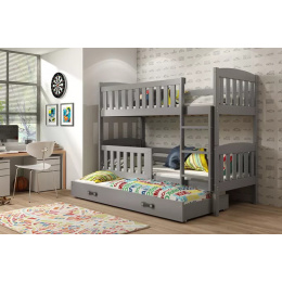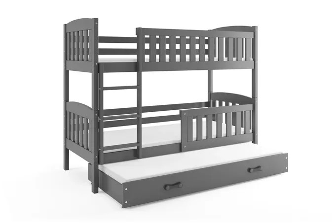 Dětská patrová postel KUBUS 3 s přistýlkou 90x200 cm, včetně matrací, Grafit/Grafit