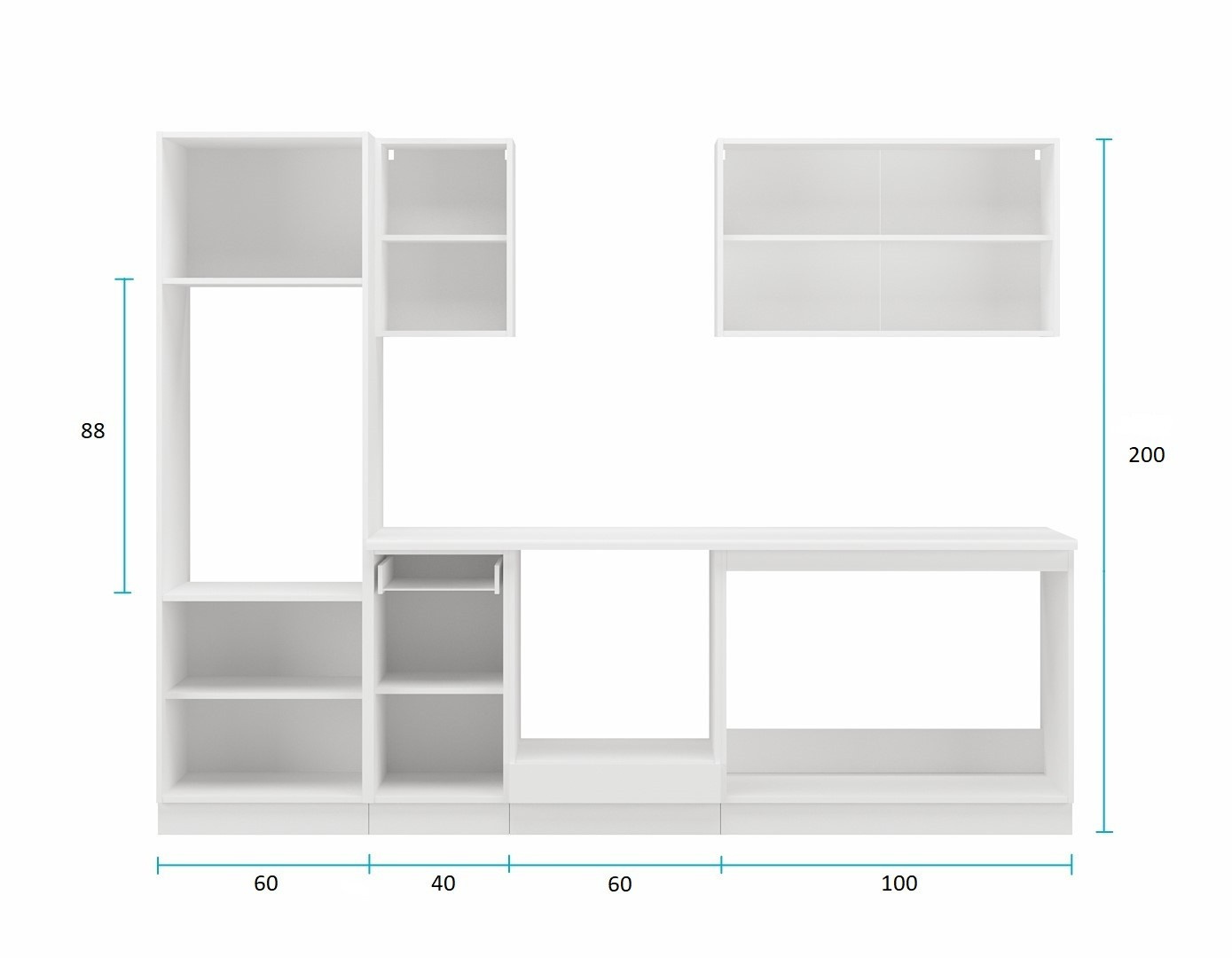Zboží je dodáváno v demontu, součástí je montážní plánek včetně všech potřebných spojovacích materiálů. Vyobrazené spotřebiče, dřez, baterie a dekorace nejsou v ceně.