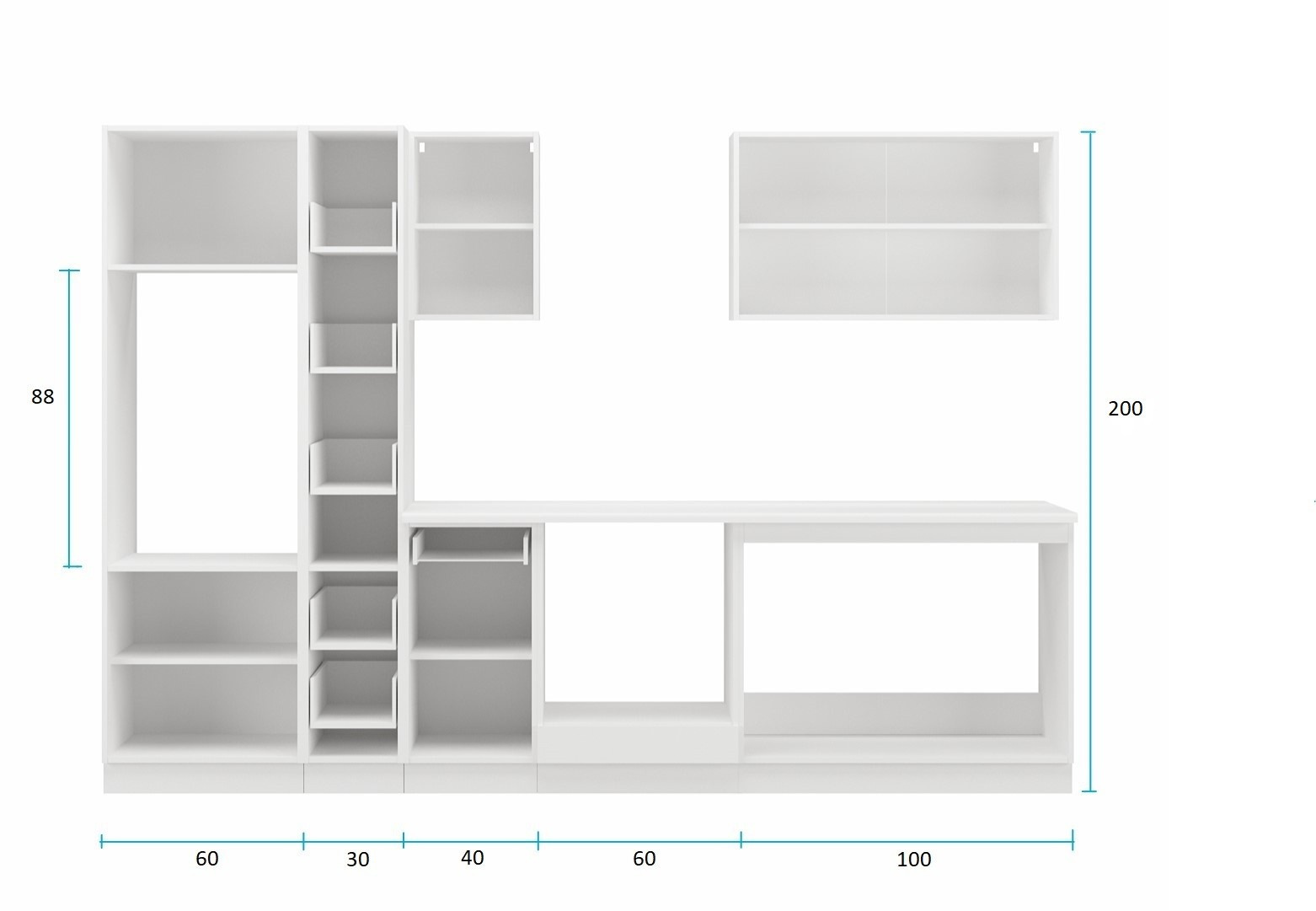 Zboží je dodáváno v demontu, součástí je montážní plánek včetně všech potřebných spojovacích materiálů. Vyobrazené spotřebiče, dřez, baterie a dekorace nejsou v ceně.