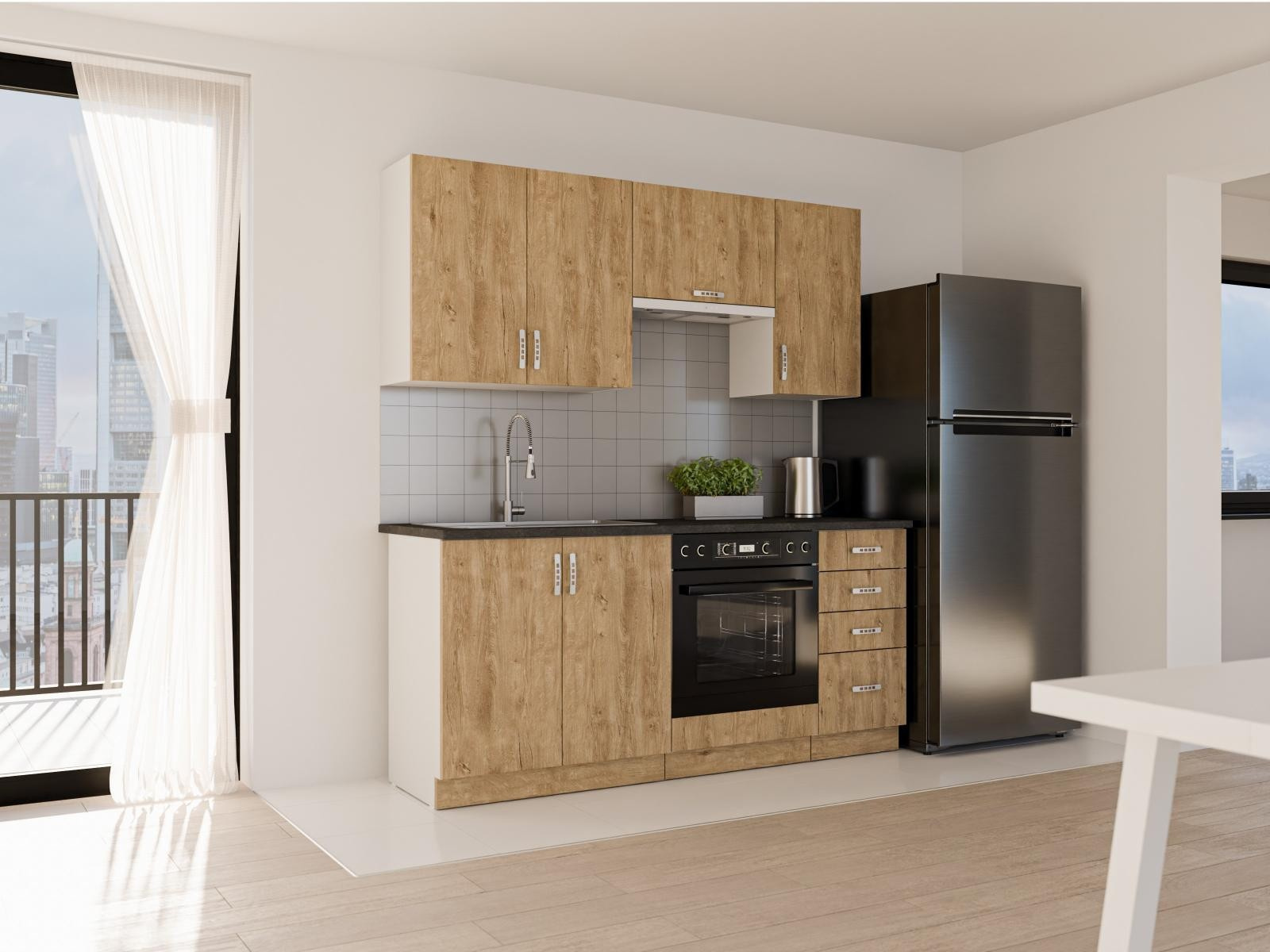 Nadčasová série Sally nabízí moderní a praktické kuchyňské skříňky v různých velikostech. Z široké škály skříněk v dekoru dub lefkas si snadno sestavíte svou vysněnou kuchyň. Kuchyňská dvířka jsou vyrobená z odolného a snadno udržovatelného lamina.
