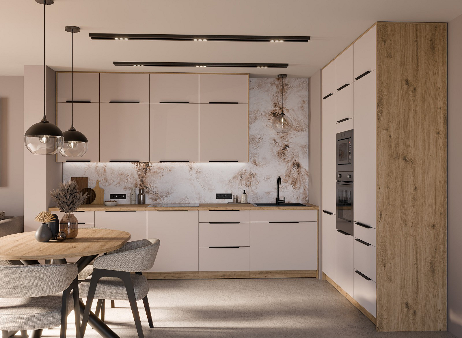 Kolekce modulárních kuchyňských skříněk Selva okouzlí harmonickým designem a moderní elegancí. Dvířka v dekoru kašmír v kombinaci s přírodními detaily dodají interiéru svěžest a vytvoří jedinečnou atmosféru, díky níž budou každodenní chvíle v kuchyni ještě příjemnější. Z bohaté nabídky série Selva si můžete sestavit kuchyň přesně podle vašich představ a prostorových možností.