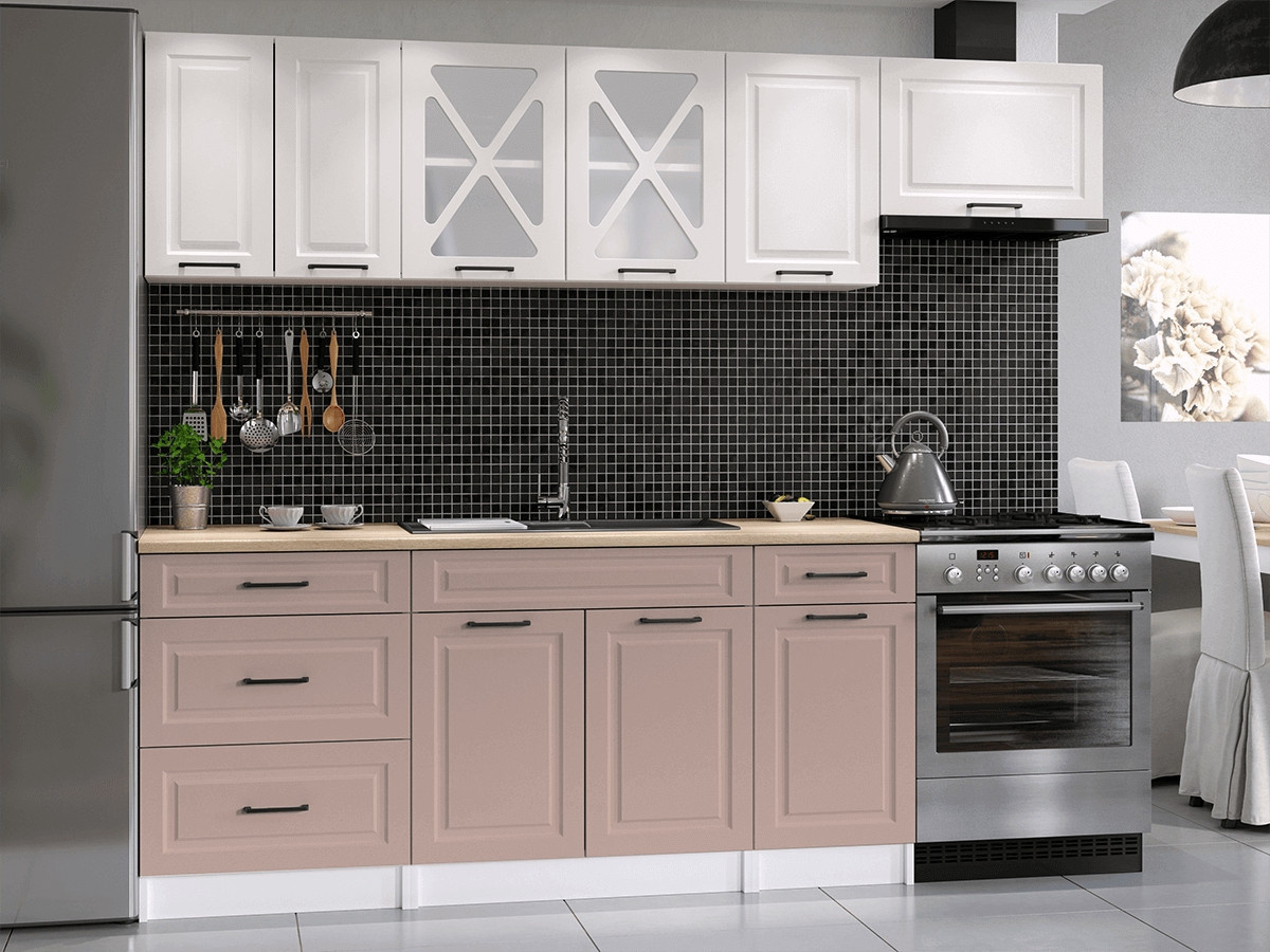 Kuchyňská linka Magda je vyrobená ve venkovském stylu, který se hodí do kuchyně v paneláku i v rodinném domě. Tento styl má jedinečnou schopnost proměnit Vaši kuchyň v útulnou a zároveň funkční místnost, kde bude radost vařit i péct. Kuchyňská linka Magda nabízí dostatek úložného i pracovního prostoru. Všechny skříňky jsou samostatné, takže si je můžete sestavit tak, jak Vám to vyhovuje. Korpusy skříněk jsou vyrobené z lamina 18 mm s hranami ABS a dvířka jsou MDF 16mm. Všechny skříňky jsou dodávány v demontu. Součástí balení je montážní plánek včetně všech potřebných spojovacích prvků. Cena je uvedna za sestavu vyobrazenou na úvodní fotografii BEZ PRACOVNÍ DESKY, s úchytkami, které jsou vyobrazeny v doplňkových fotografiích. Pracovní desku lze dokoupit nad každou skříňku zvlášť podle její šíře. Vyobrazené spotřebiče, dřez, baterie, doplňky a dekorace nejsou v ceně. Kuchyň bude dodaná s bílými korpusy a dvířky v kombinaci bílá a růžová. Zobrazení barev na fotografii se může od skutečnosti lišit.