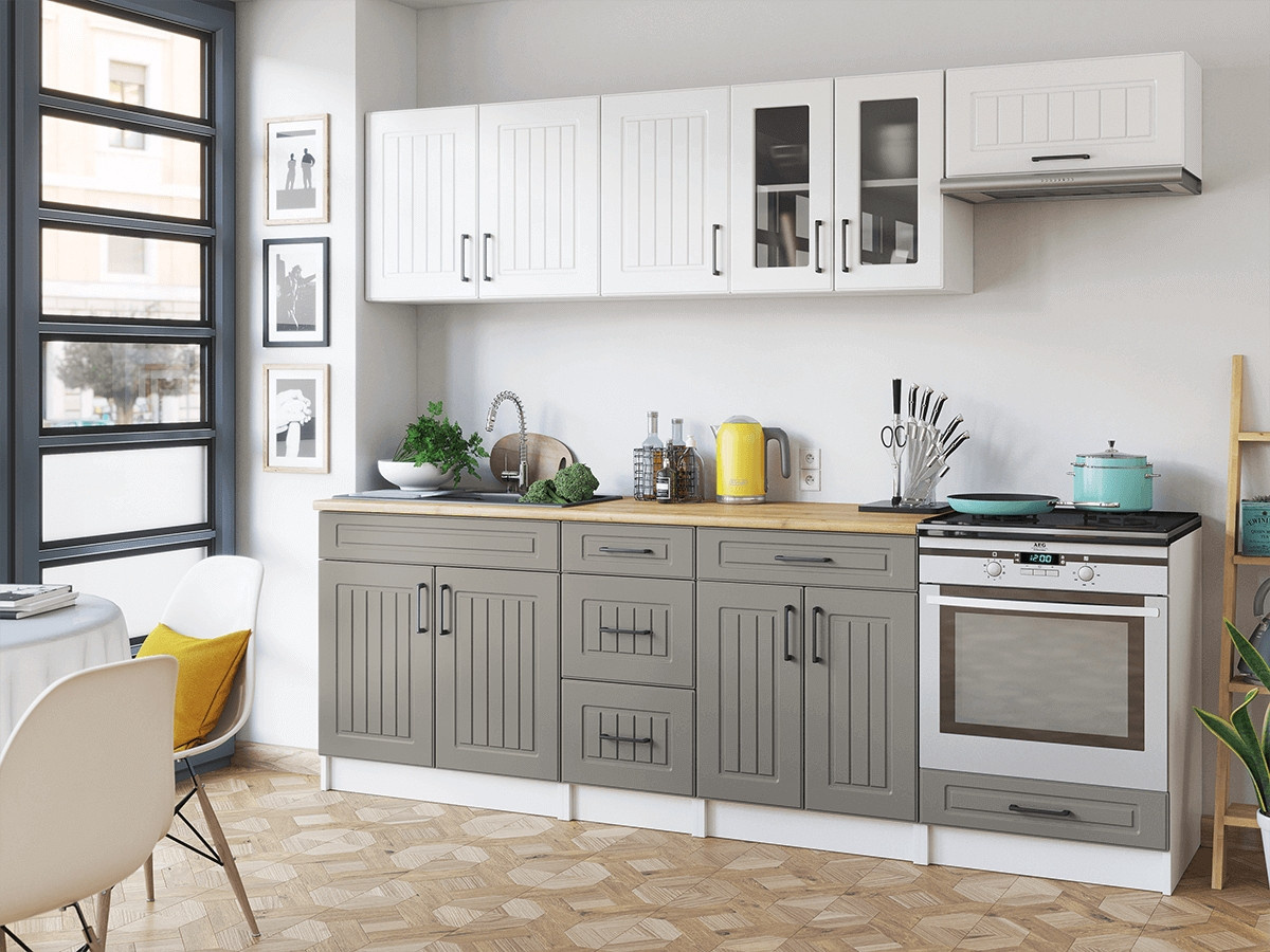 Kuchyňská linka Běla je vyrobená ve velmi oblíbeném venkovském stylu, který se hodí do kuchyně v paneláku i v rodinném domě. Tento styl má jedinečnou schopnost proměnit Vaši kuchyň v útulnou a zároveň funkční místnost, kde bude radost vařit i péct. Kuchyňská linka Běla nabízí dostatek úložného i pracovního prostoru. Všechny skříňky jsou samostatné, takže si je můžete sestavit tak, jak Vám to vyhovuje. Korpusy skříněk jsou vyrobené z lamina 18 mm s hranami ABS a dvířka jsou MDF 16mm. Všechny skříňky jsou dodávány v demontu. Součástí balení je montážní plánek včetně všech potřebných spojovacích materiálů. Cena je uvedena za sestavu vyobrazenou na úvodní fotografii BEZ PRACOVNÍ DESKY, s úchytkami, které jsou vyobrazeny v doplňkových fotografiích. Pracovní desku lze dokoupit nad každou skříňku zvlášť podle její šíře. Vyobrazené spotřebiče, dřez, baterie, doplňky a dekorace nejsou v ceně. Zobrazení barev na fotografii se může od skutečnosti lišit.