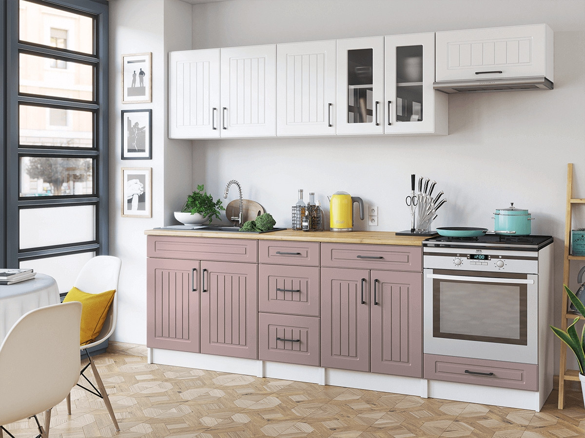 Kuchyňská linka Běla 240/240 bílá/růžová MAT