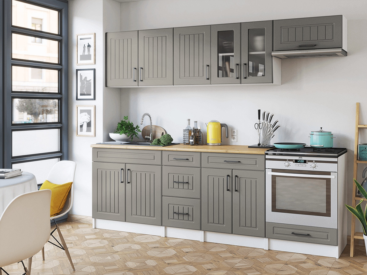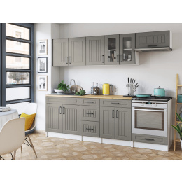 Kuchyňská linka Běla je vyrobená ve velmi oblíbeném venkovském stylu, který se hodí do kuchyně v paneláku i v rodinném domě. Tento styl má jedinečnou schopnost proměnit Vaši kuchyň v útulnou a zároveň funkční místnost, kde bude radost vařit i péct. Kuchyňská linka Běla nabízí dostatek úložného i pracovního prostoru. Všechny skříňky jsou samostatné, takže si je můžete sestavit tak, jak Vám to vyhovuje. Korpusy skříněk jsou vyrobené z lamina 18 mm s hranami ABS a dvířka jsou MDF 16mm. Všechny skříňky jsou dodávány v demontu. Součástí balení je montážní plánek včetně všech potřebných spojovacích materiálů. Cena je uvedena za sestavu vyobrazenou na úvodní fotografii BEZ PRACOVNÍ DESKY, s úchytkami, které jsou vyobrazeny v doplňkových fotografiích. Pracovní desku lze dokoupit nad každou skříňku zvlášť podle její šíře. Vyobrazené spotřebiče, dřez, baterie, doplňky a dekorace nejsou v ceně. Zobrazení barev na fotografii se může od skutečnosti lišit.