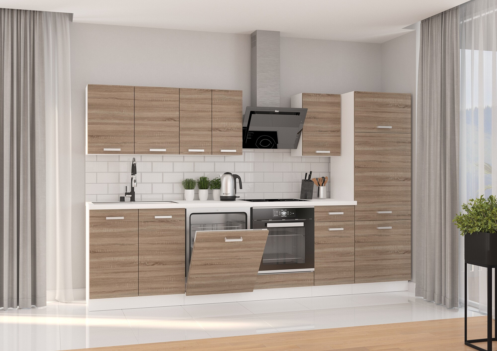 Kuchyňská linka DAVIS - 3 m, Bílá/Dub Sonoma Trufla