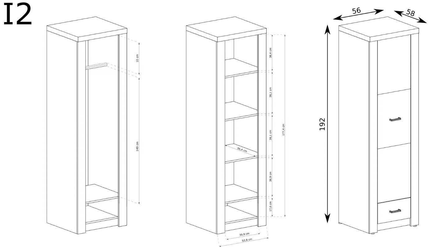 Jednodveřová šatní skříň je skvělým řešením pro malé místnosti. Hodí se do jakéhokoli uspořádání a doplní místnost. Má tyč, na kterou můžete zavěsit oblečení. Je zde také zásuvka na některé doplňky, oblečení nebo drobnosti. Existuje také možnost nahradit tyč třemi policemi. Pak v ní máme více prostoru pro uložení dalších věcí, oblečení. K dostání ve třech barvách.