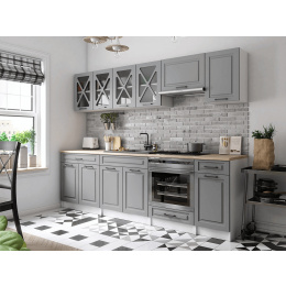 Kuchyňská linka Gréta je vyrobená ve venkovském stylu, který se hodí do kuchyně v paneláku i v rodinném domě. Tento styl má jedinečnou schopnost proměnit Vaši kuchyň v útulnou a zároveň funkční místnost, kde bude radost vařit i péct. Kuchyňská linka Gréta nabízí dostatek úložného i pracovního prostoru. Všechny skříňky jsou samostatné, takže si je můžete sestavit tak, jak Vám to vyhovuje. Korpusy skříněk jsou vyrobené z lamina 18 mm s hranami ABS a dvířka jsou MDF 16mm. Všechny skříňky jsou dodávány v demontu. Součástí balení je montážní plánek včetně všech potřebných spojovacích materiálů. Cena je uvedena za sestavu vyobrazenou na úvodní fotografii BEZ PRACOVNÍ DESKY, s úchytkami, které jsou vyobrazeny v doplňkových fotografiích. Pracovní desku lze dokoupit nad každou skříňku zvlášť podle její šíře. Vyobrazené spotřebiče, dřez, baterie, doplňky a dekorace nejsou v ceně. Zobrazení barev na fotografii se může od skutečnosti lišit.