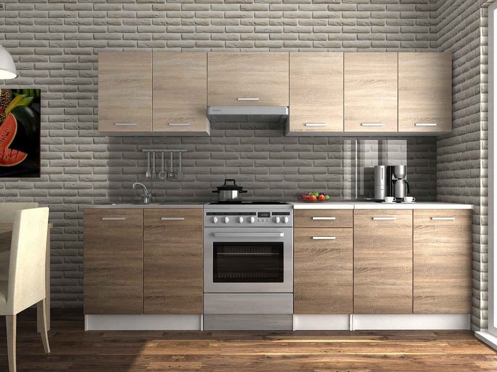 Kuchyňská linka Luigi je ideální volbou pro Vaši kuchyň. Je moderní a zároveň i praktická. Skříňky nabízejí dostatek úložného prostoru. Je vyrobená z lamina, které je odolné a snadné na údržbu. Díky svým rozměrům je vhodná i do malých kuchyní. Skříňky si můžete sestavit libovolně. Kuchyňská linka je dodávaná v demontu. Součástí balení je montážní plánek včetně všech potřebných spojovacích materiálů. Cena je uvedena za sestavu vyobrazenou na úvodní fotografii BEZ PRACOVNÍ DESKY. Kuchyň nabízíme v několika rozměrech i dekorech.Vyobrazené spotřebiče, dřez a dekorace nejsou v ceně.