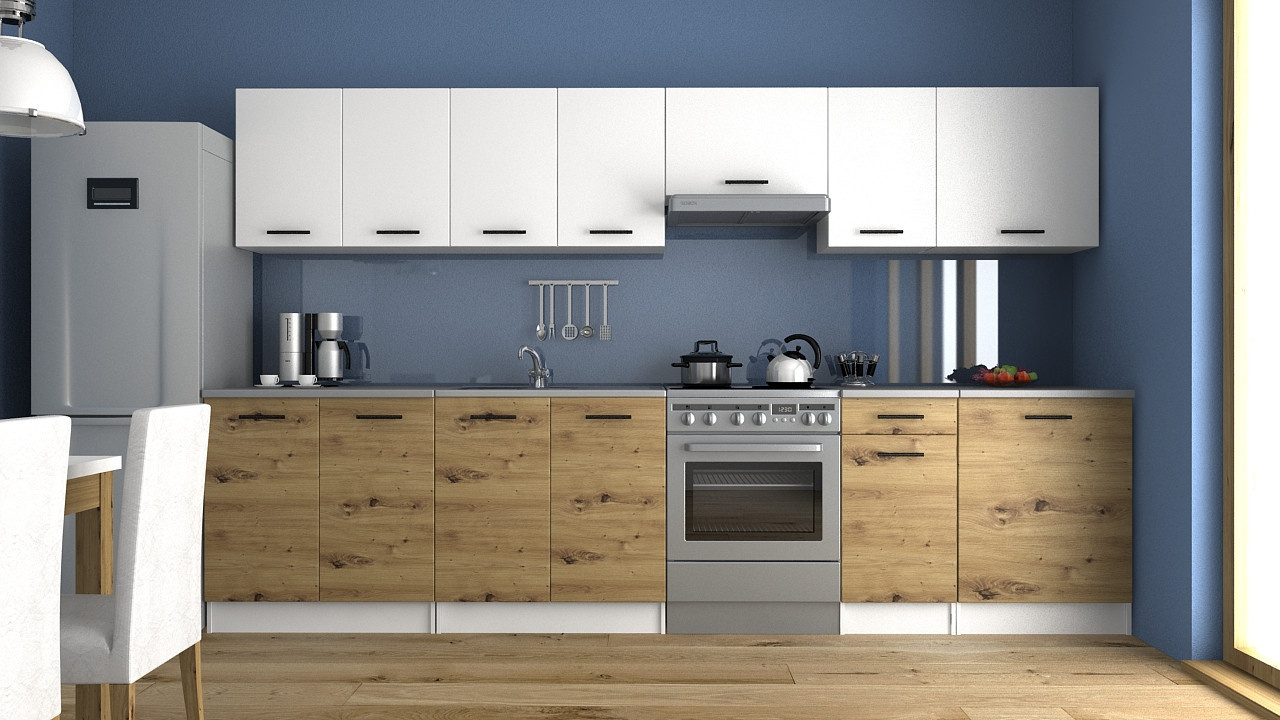Kuchyňská linka Luigi je ideální volbou pro Vaši kuchyň. Je moderní a zároveň i praktická. Skříňky nabízejí dostatek úložného prostoru. Je vyrobená z lamina, které je odolné a snadné na údržbu. Díky svým rozměrům je vhodná i do malých kuchyní. Skříňky si můžete sestavit libovolně. Kuchyňská linka je dodávaná v demontu. Součástí balení je montážní plánek včetně všech potřebných spojovacích materiálů. Cena je uvedena za sestavu vyobrazenou na úvodní fotografii BEZ PRACOVNÍ DESKY. Kuchyň nabízíme v několika rozměrech i dekorech.Vyobrazené spotřebiče, dřez a dekorace nejsou v ceně.
