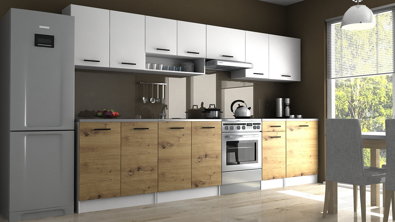 Kuchyňská linka Luigi je ideální volbou pro Vaši kuchyň. Je moderní a zároveň i praktická. Skříňky nabízejí dostatek úložného prostoru. Je vyrobená z lamina, které je odolné a snadné na údržbu. Díky svým rozměrům je vhodná i do malých kuchyní. Skříňky si můžete sestavit libovolně. Kuchyňská linka je dodávaná v demontu. Součástí balení je montážní plánek včetně všech potřebných spojovacích materiálů. Cena je uvedena za sestavu vyobrazenou na úvodní fotografii BEZ PRACOVNÍ DESKY. Kuchyň nabízíme v několika rozměrech i dekorech.Vyobrazené spotřebiče, dřez a dekorace nejsou v ceně.