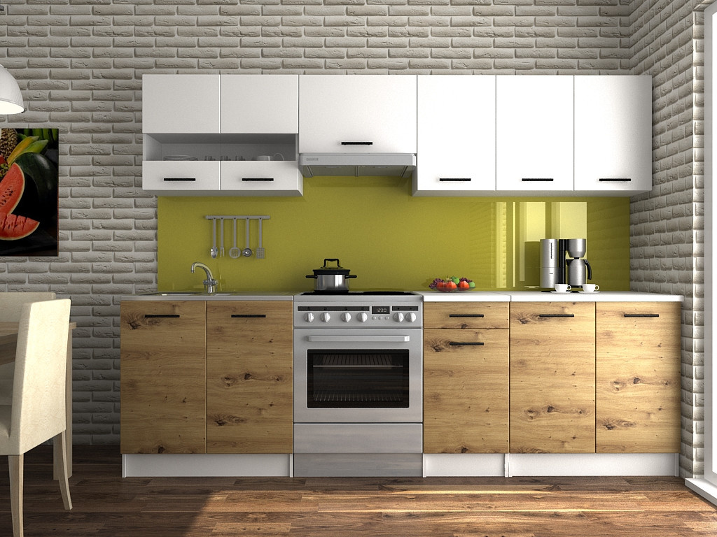 Kuchyňská linka Luigi je ideální volbou pro Vaši kuchyň. Je moderní a zároveň i praktická. Skříňky nabízejí dostatek úložného prostoru. Je vyrobená z lamina, které je odolné a snadné na údržbu. Díky svým rozměrům je vhodná i do malých kuchyní. Skříňky si můžete sestavit libovolně. Kuchyňská linka je dodávaná v demontu. Součástí balení je montážní plánek včetně všech potřebných spojovacích materiálů. Cena je uvedena za sestavu vyobrazenou na úvodní fotografii BEZ PRACOVNÍ DESKY. Kuchyň nabízíme v několika rozměrech i dekorech.Vyobrazené spotřebiče, dřez a dekorace nejsou v ceně.